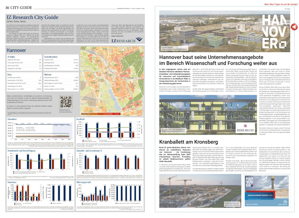 The IZ Research City Guides offer a compact, data-based overview of the socio-economic and real estate conditions of cities and municipalities. They create a sound basis for comparing locations and real estate valuations.